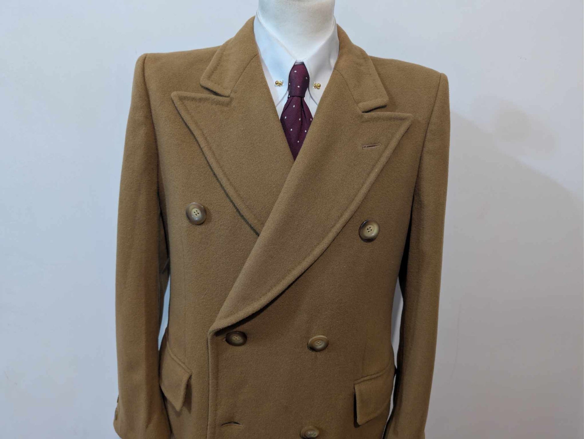 Je vous propose lumineux manteau croisé de couleur camel en laine cachemire.