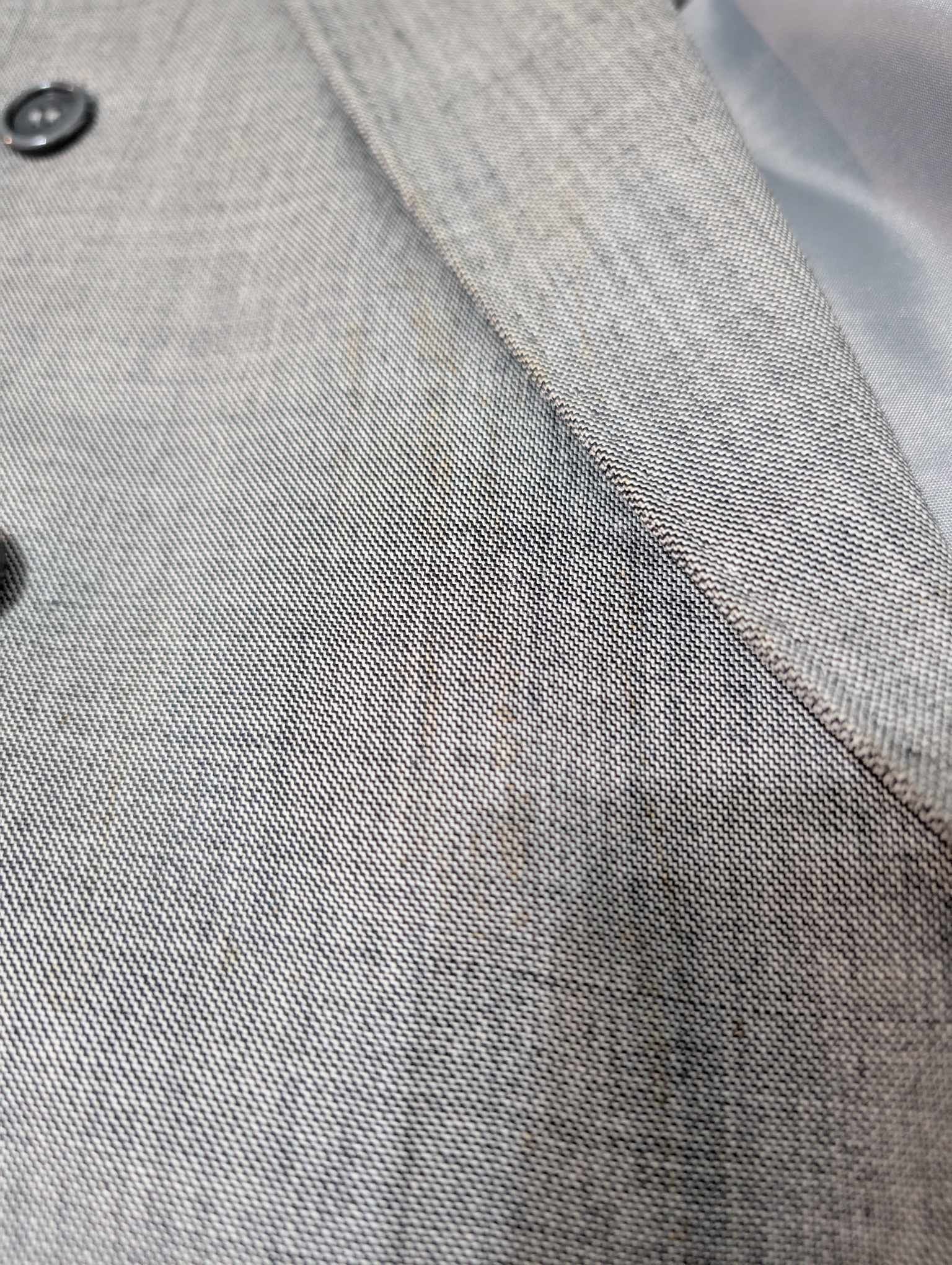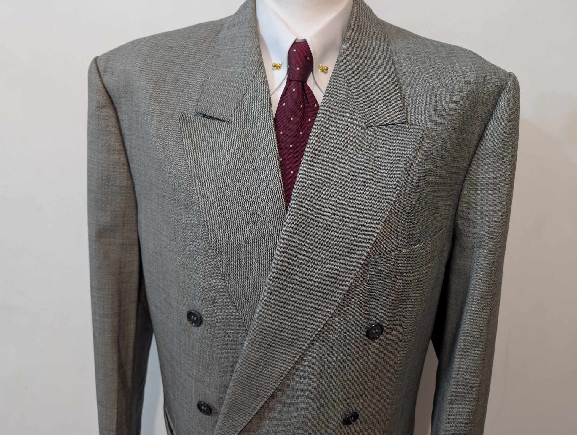 je vous propose ce grand costume croisé de couleurs gris en laine.