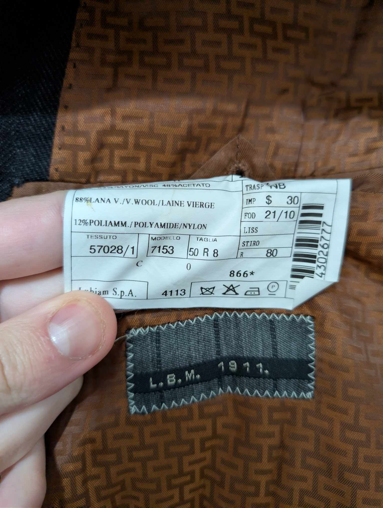 Le manteau est un manteau croisé 6 x 2 avec de magnifiques verts en pointe.