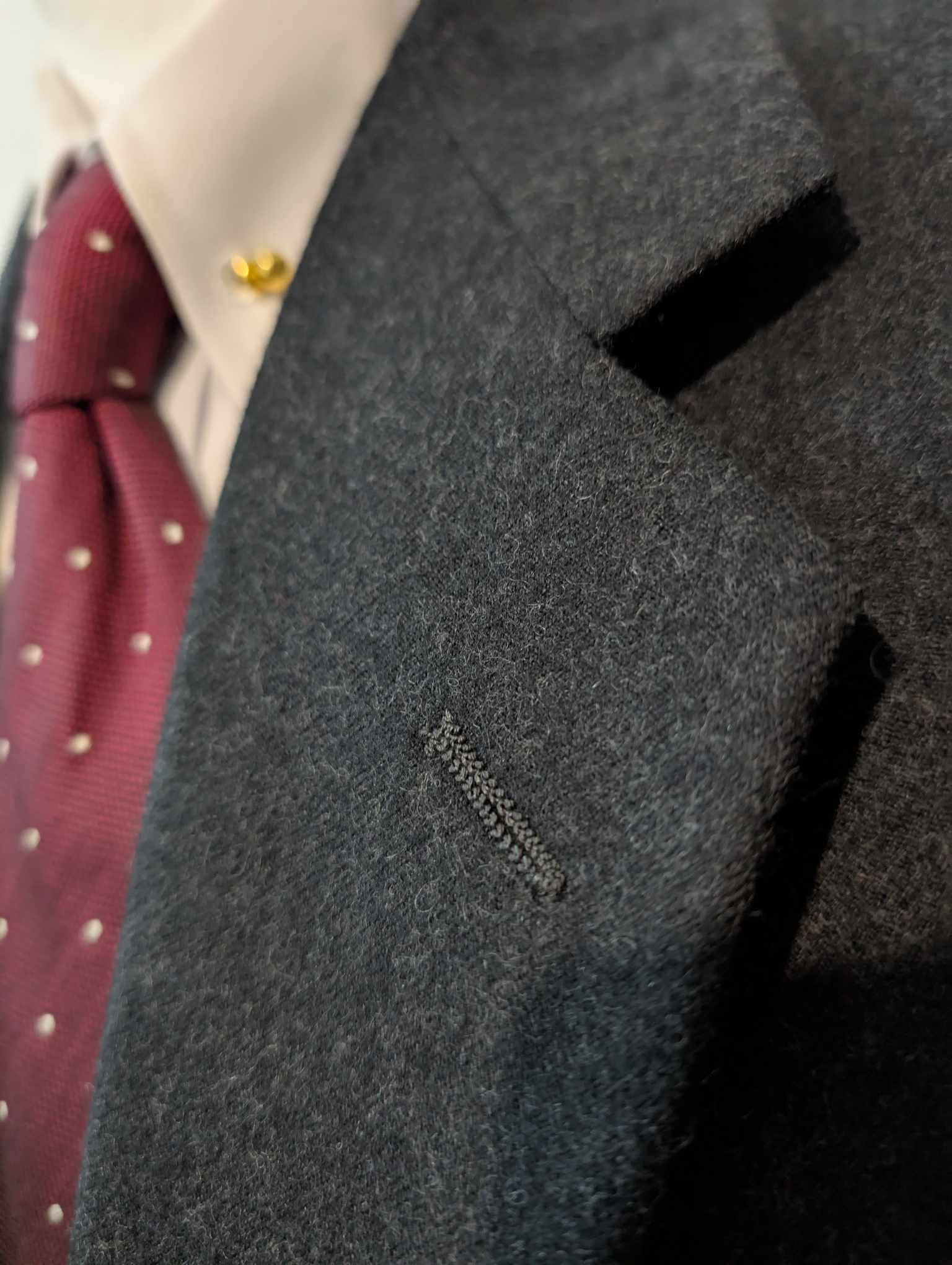 Je vous propose ce mignon costume de couleur gris anthracite en flanelle lourde