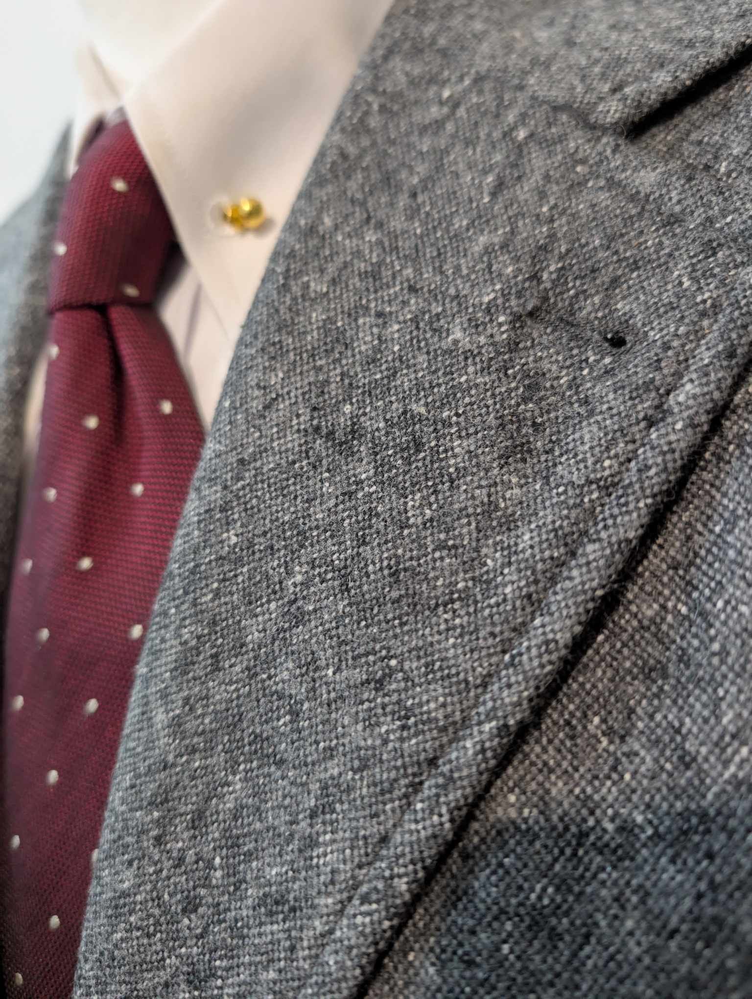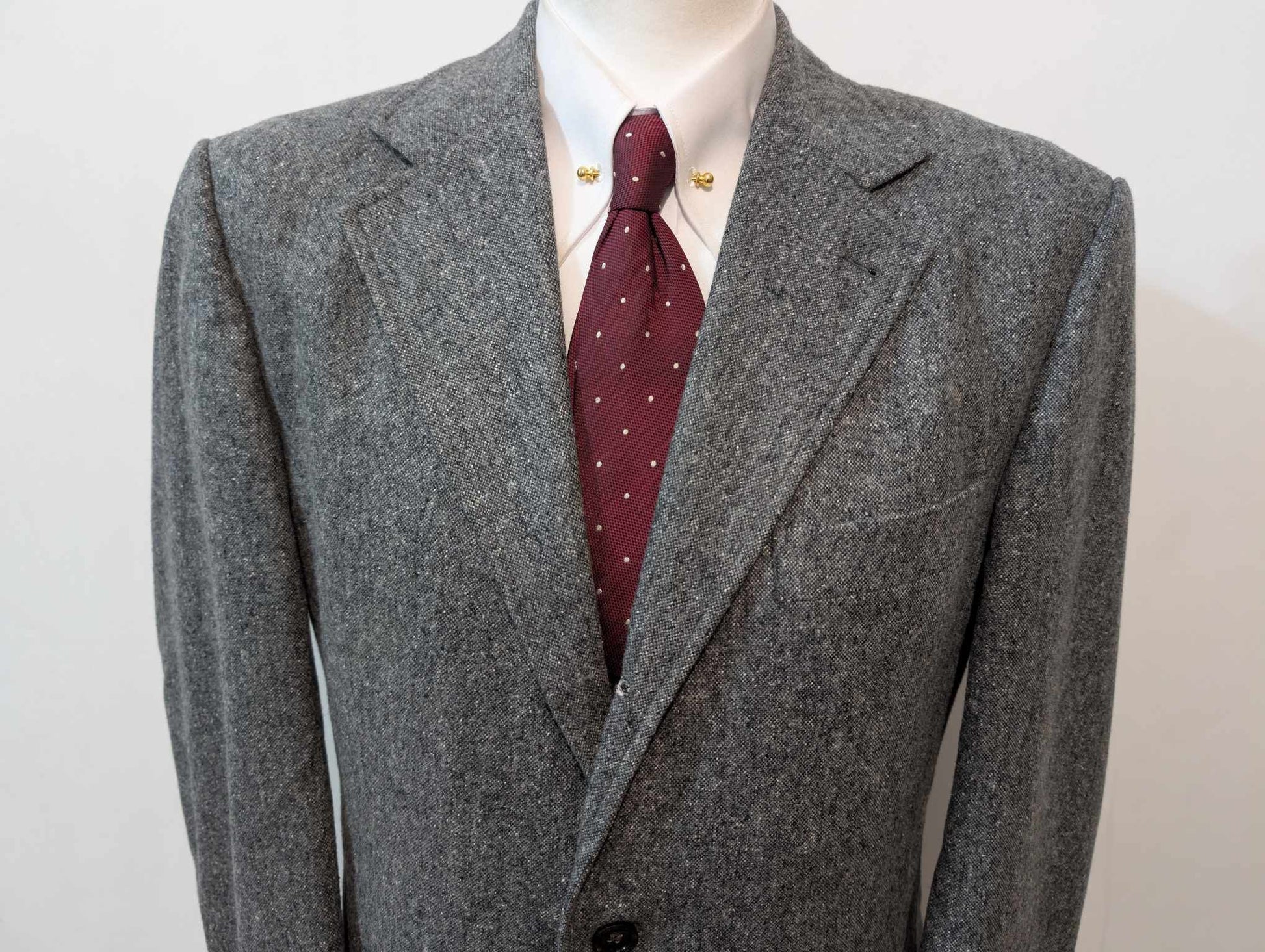 Je vous propose ce rarissime costume de couleur gris chiné en tweed.