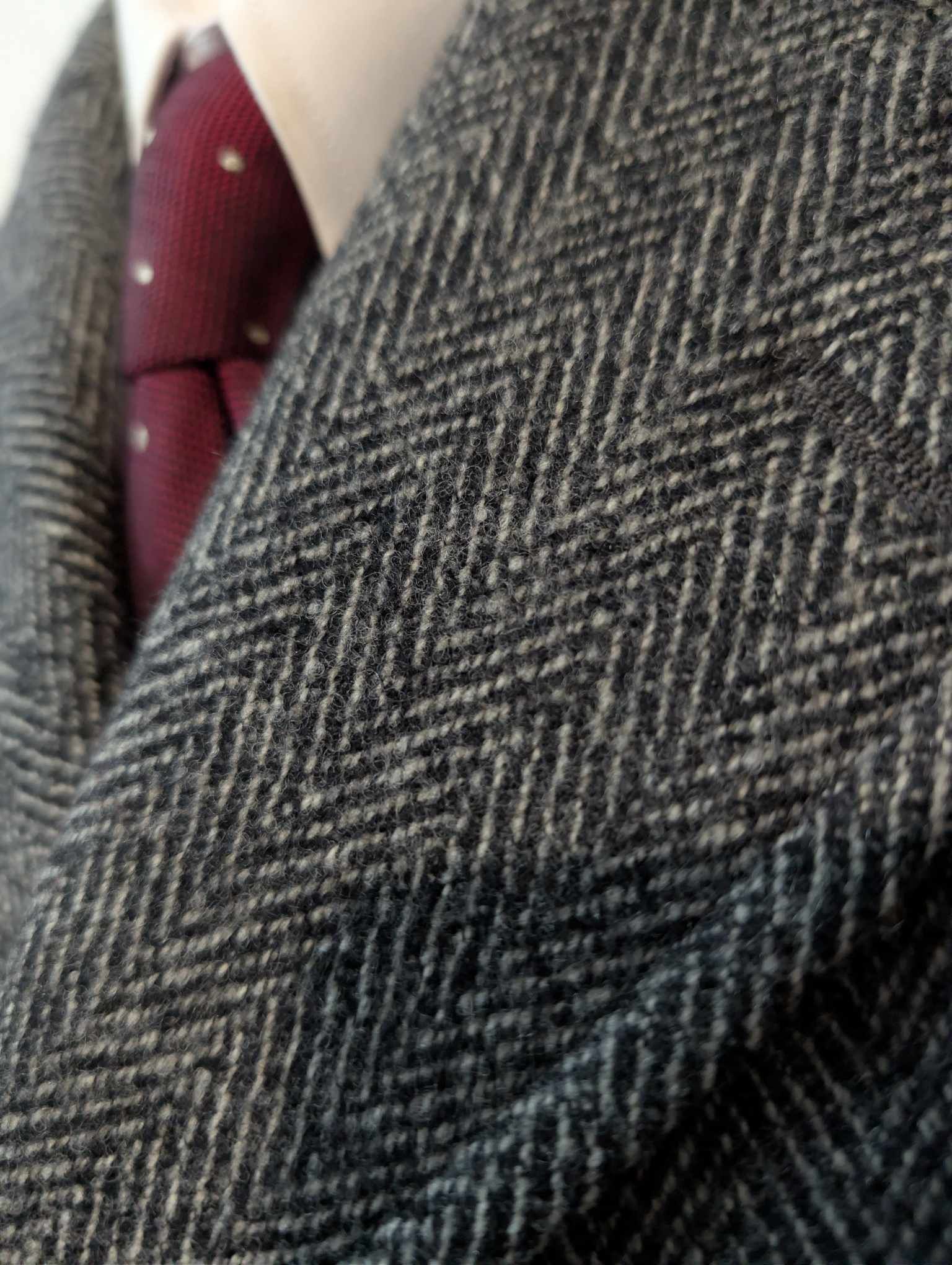Je vous propose ce redoutable manteau de couleur gris à motif chevron en laine de chez vitale barberis canonico.