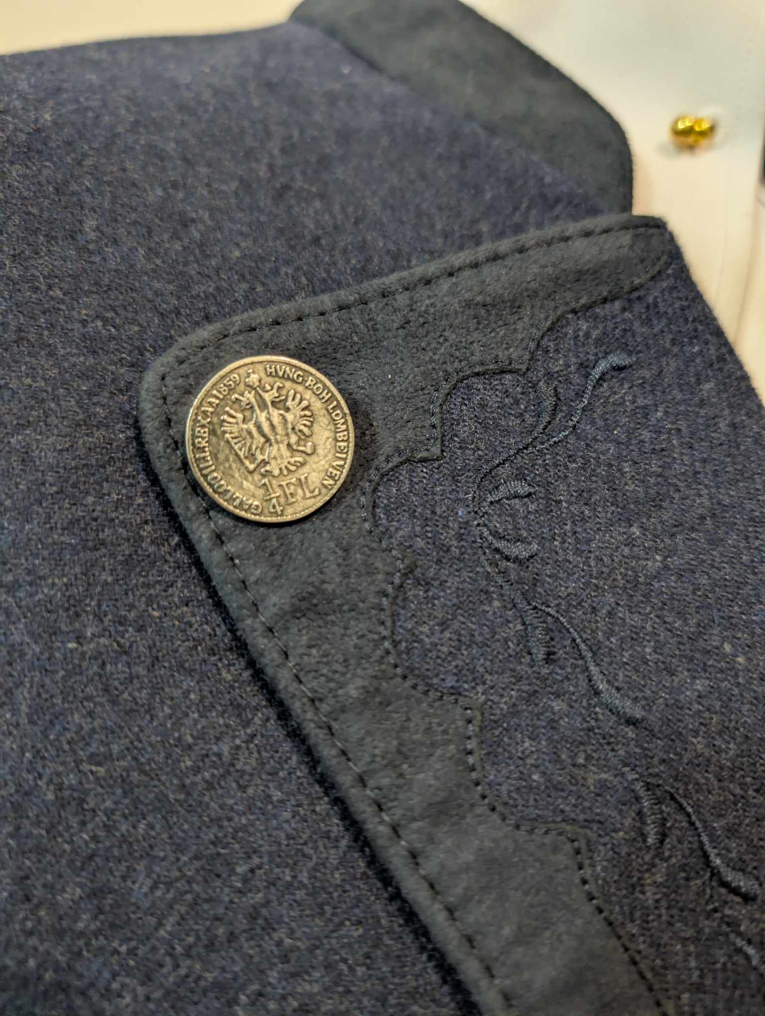 Je vous propose ce robuste costume autrichien de couleur bleu marine en flanelle épaisse.