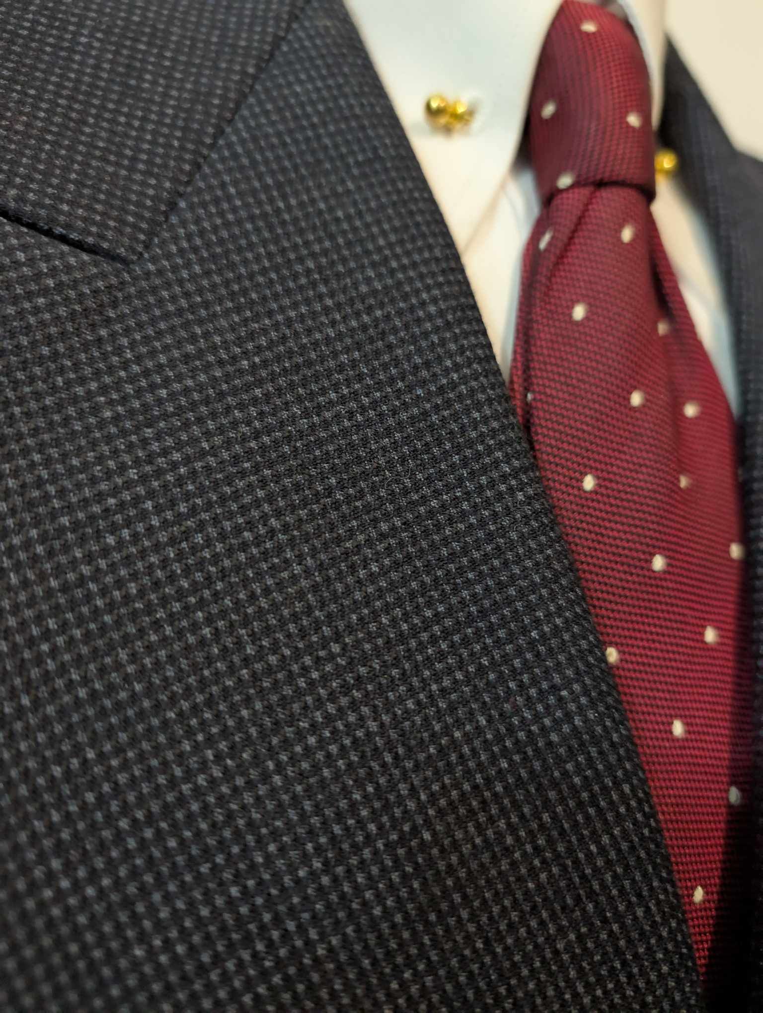 La veste est une veste croisée 6 x 2 avec de magnifiques revers en pointe.