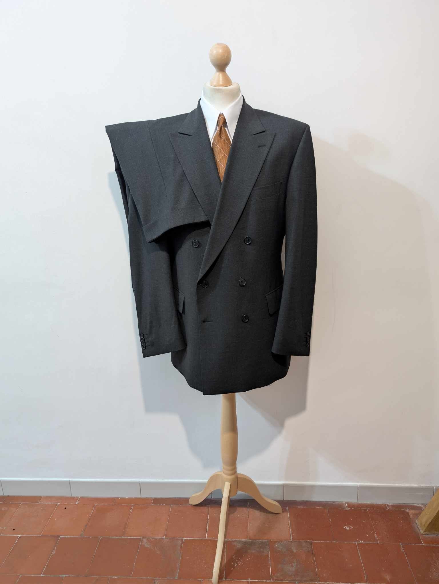 Je vous propose sublime costume croisé de couleur gris en laine froide.