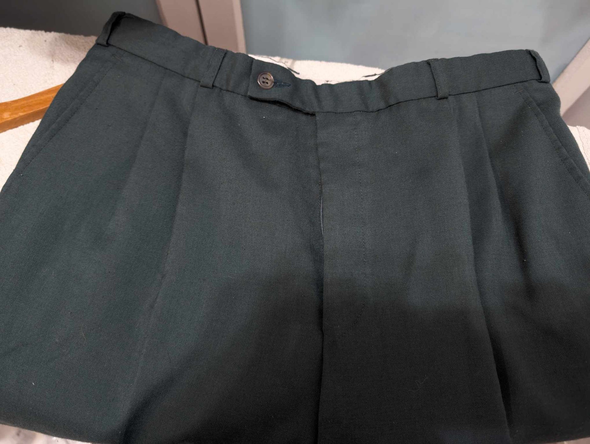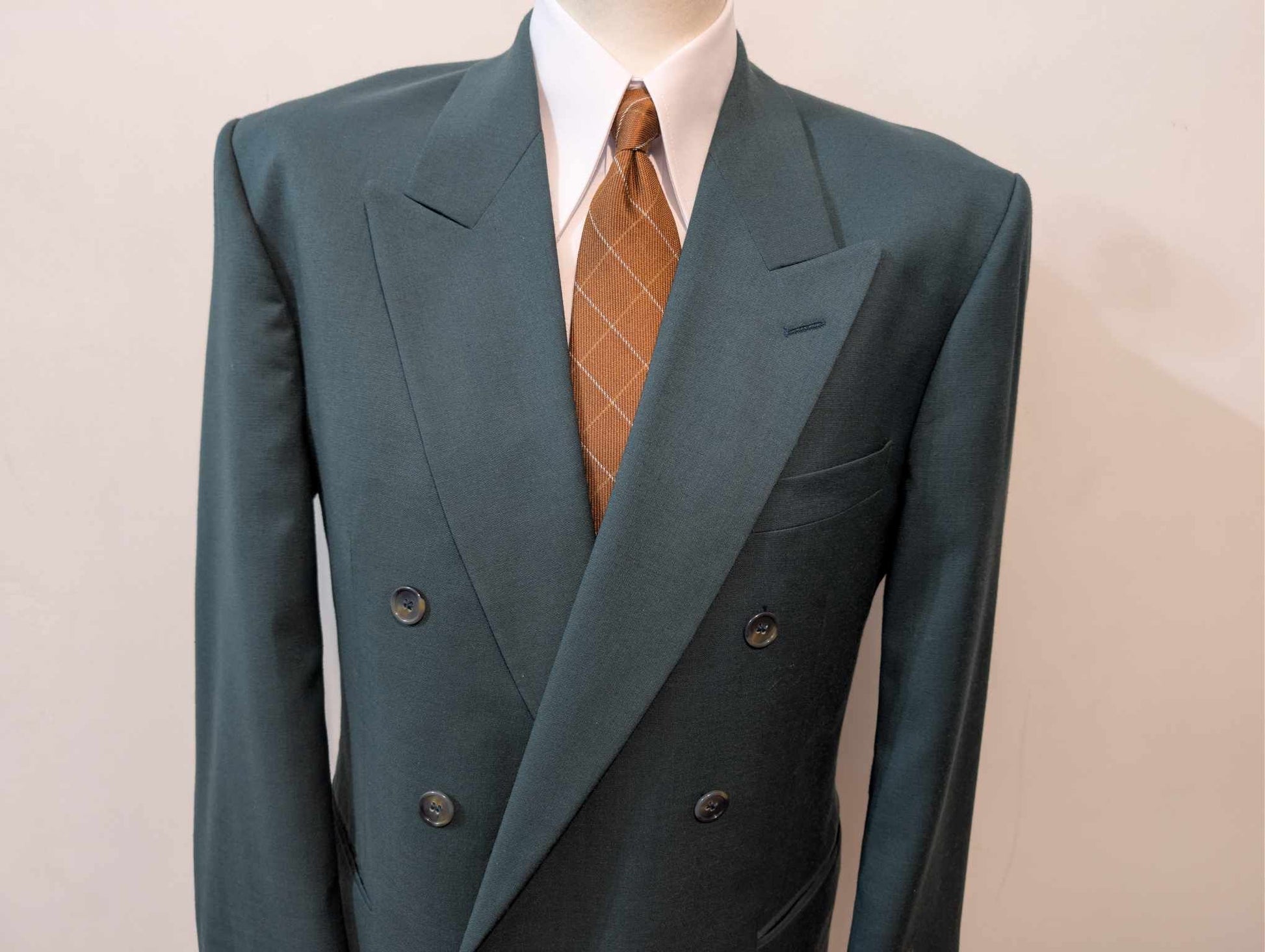 Je vous propose ce superbe costume croisé de couleur vert en laine froide.